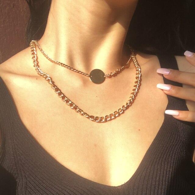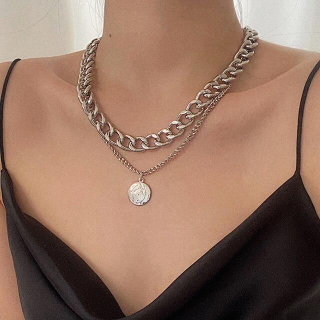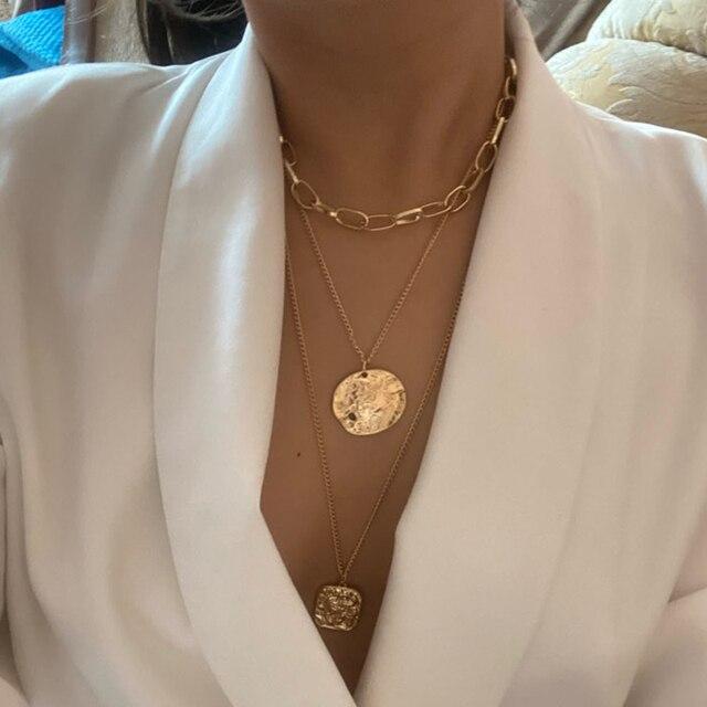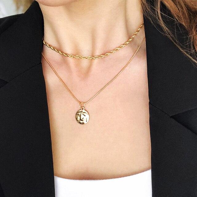17KM Bohemian Multi-layered Portrait Coin Necklace For Women Gold Geometric Round Lock Pendant Necklaces Sweater Jewelry