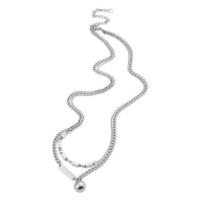 Beautiful Double Layer Chain Square And Ball Pendant Necklace For Women Stainless Steel Top Quality Gold Color Fashion Jewelry