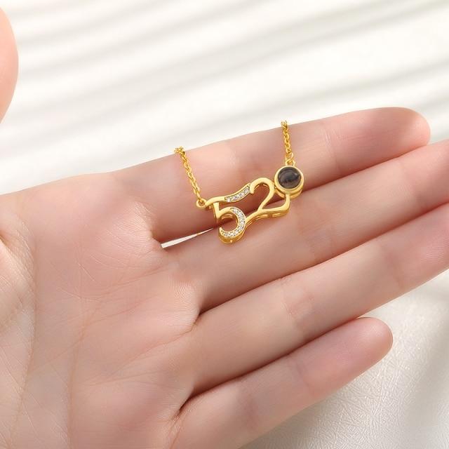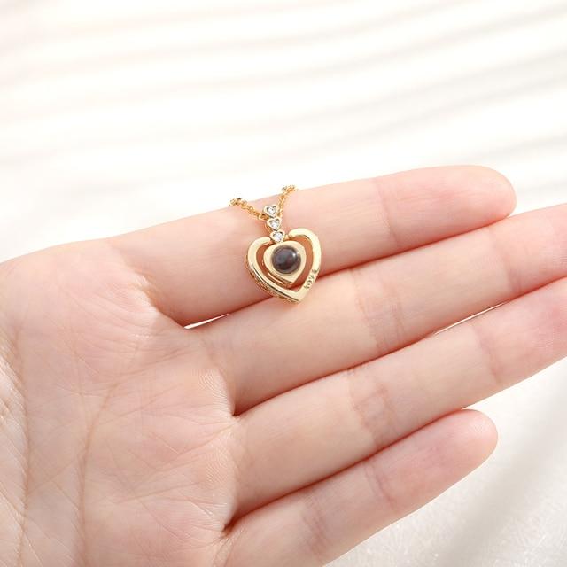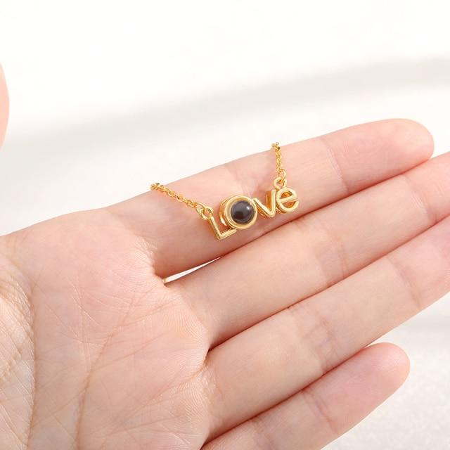 Dropshippi Platinu100 Languages I Love You Projection Pendant Necklace Women CZ Jewelry Stainless Steel Gold Chain Collier Femme