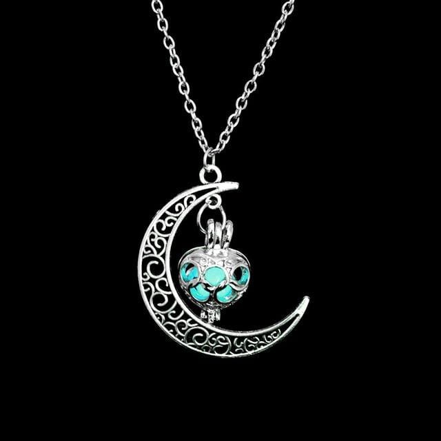 FAMSHIN Fashion Silver Color Charm Luminous Pendant Necklace Women Moon Glowing Stone Necklace Christmas Necklaces Jewelry Gifts