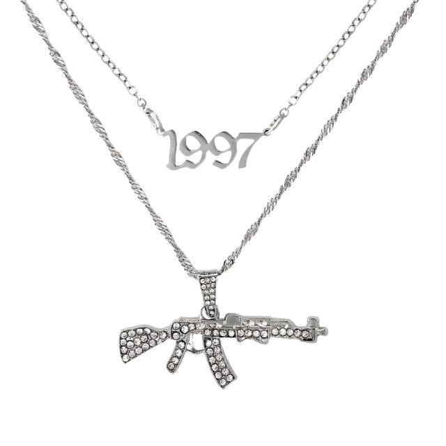 Gold Silver Color Multi Layered Rhinestone Tennis Choker Necklace For Women Shining Crystal AK47 Gun Pendants Long Chain Jewelry