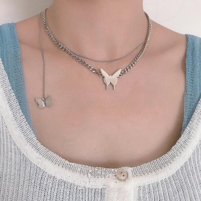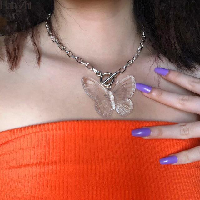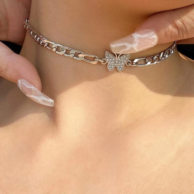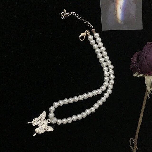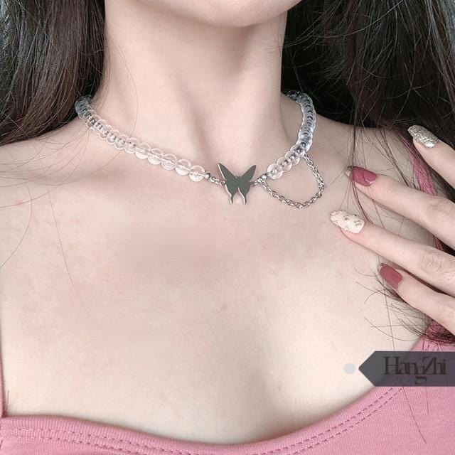 HangZhi 2020 New Short Pearl Rhinestones Choker Butterfly Titanium Steel Necklace For Women Girls Party Hot Jewelry Gifts