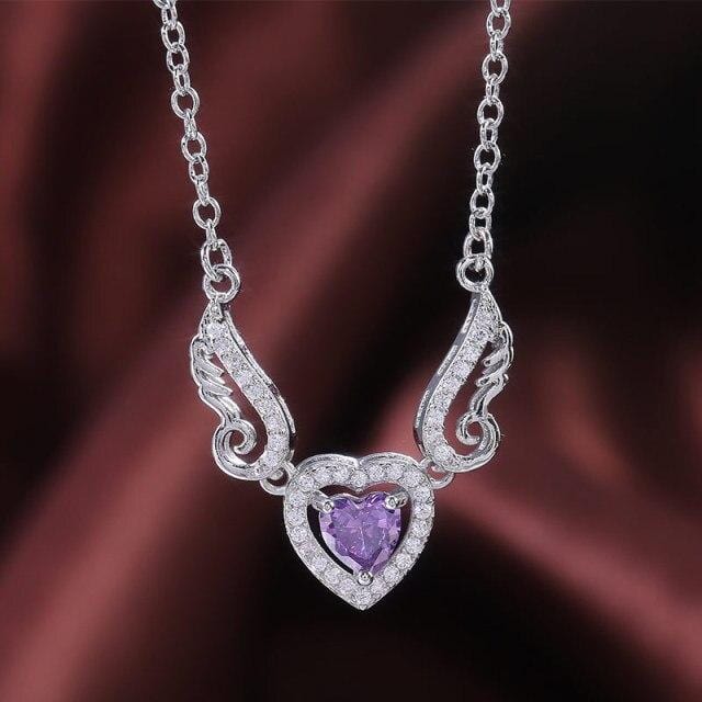Huitan Classic Flying Heart Pendant Women Necklace Three Stone Color Party Gift Necklace Micro Paved CZ Stone Heart Wing Jewelry
