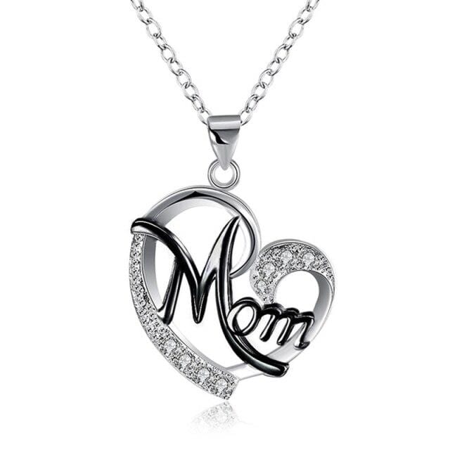 Huitan Hot Letter “Mom” Pendant Women Necklace Mother's Day Best Gift Valentine's Day & Birthday Present Heart Necklace Jewelry