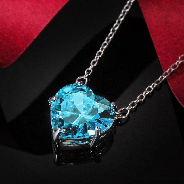 Huitan Hot Selling Big Crystal Heart Cubic Zirconia Pendant Necklace Women Romantic Bridal Wedding Simple Stylish Heart Necklace