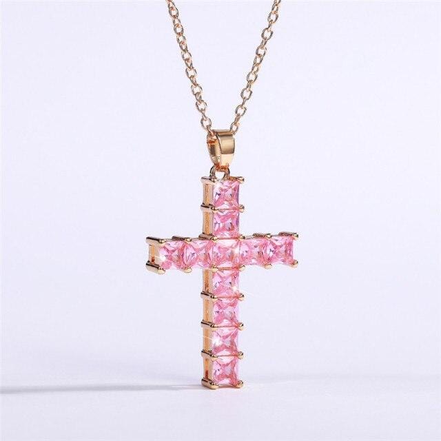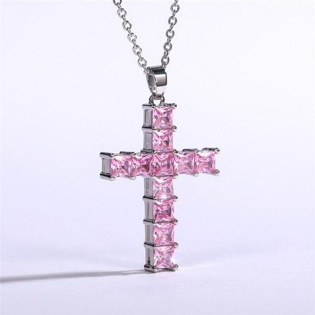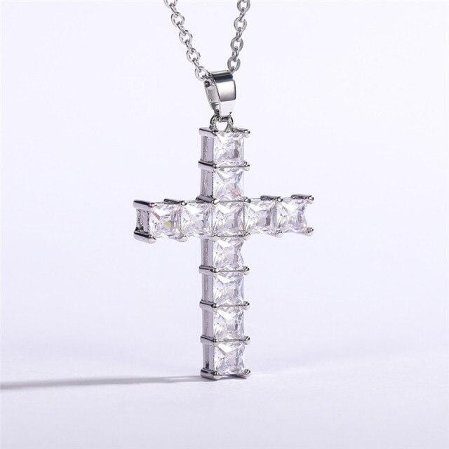 Huitan Luxury Cross Pendant Necklaces for Women Full Paved Princess Cut Square CZ Female Wedding Engagement Fashion Jewelry 2021