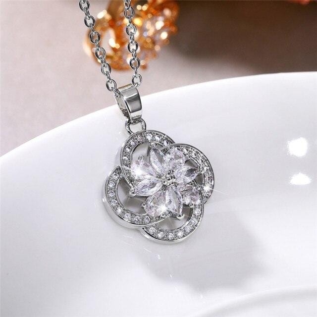 Huitan Luxury Full Cubic Zirconia Women's Necklaces 3 Color Available Romantic Bridal Wedding Jewelry On The Neck High Quality