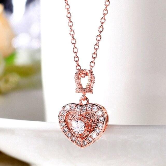 Huitan Luxury Heart Necklace for Women with Crown Design Delicate Bridal Wedding Engagement Party Accessories New Trendy Jewelry