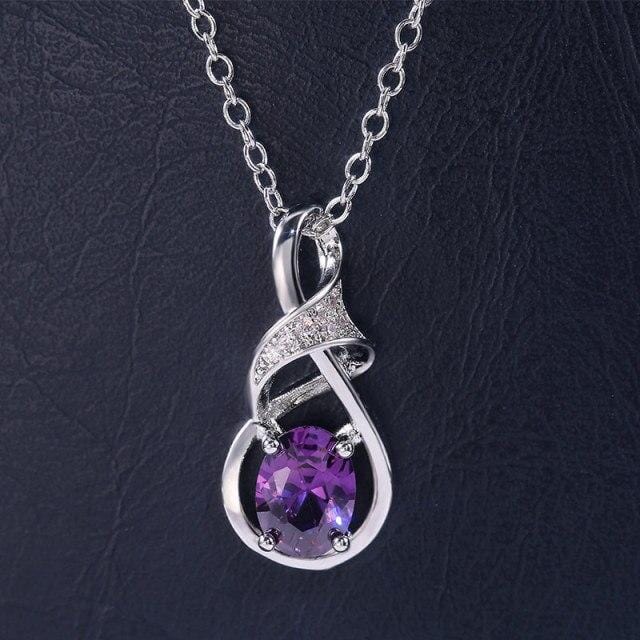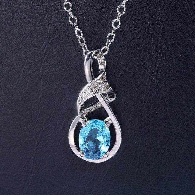 Huitan Luxury Oval Stone Pendant Necklace Women Wedding Engagement Party Accessories Simple Shape Trendy Jewelry Birthday Gift