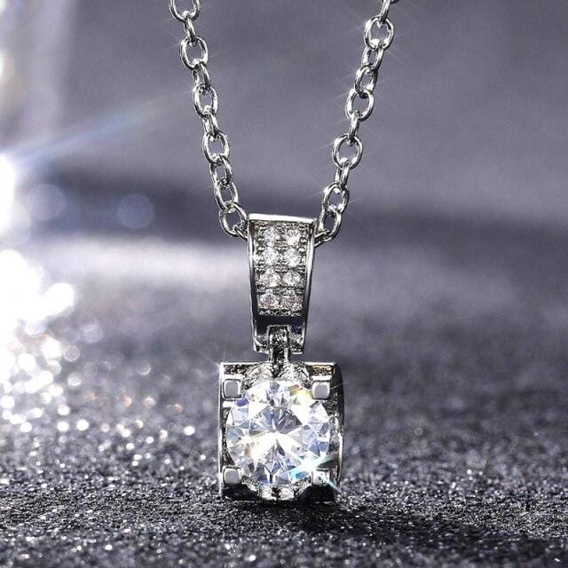 Huitan Luxury Solitaire Band Wedding Pendant Necklace Crystal Round Cubic Zirconia Dazzling High Quality Women Statement Jewelry