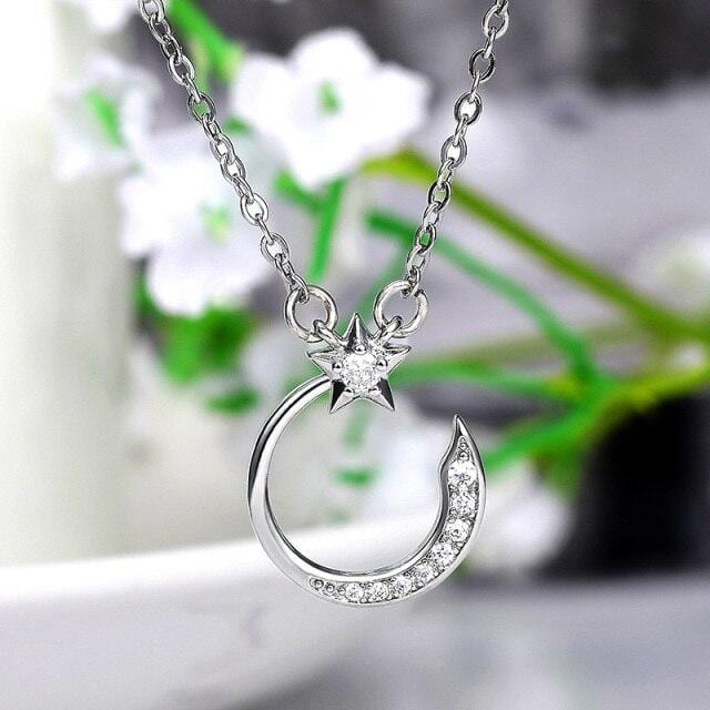 Huitan New Trendy Female Pendant Necklaces with Moon Star Stylish Party Necklace for Women Exquisite Gift Statement Neck Jewelry