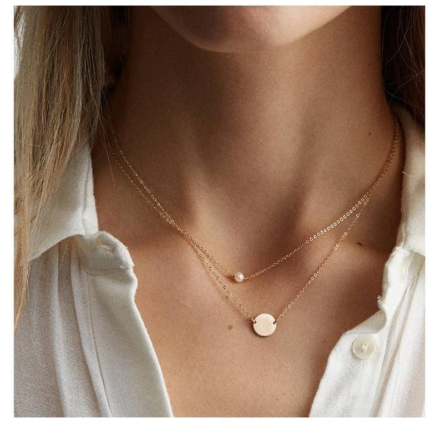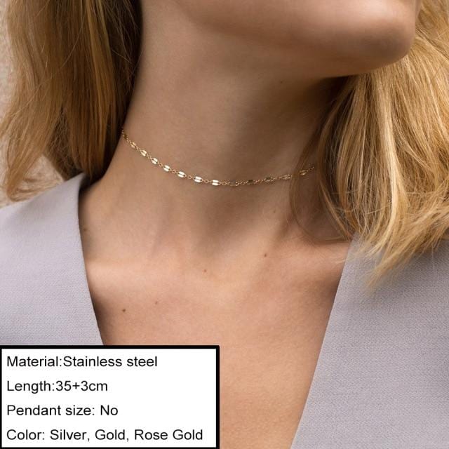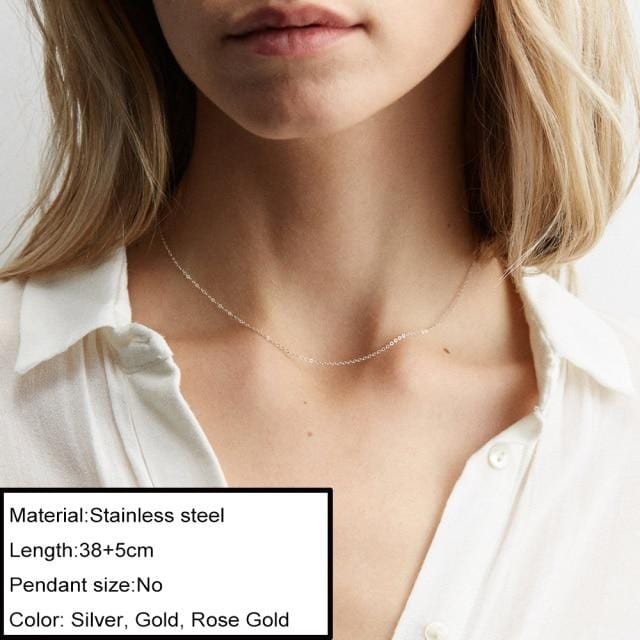 JUJIE Stainless Steel Choker Chain Necklaces For Women 2021 Classic Gold Layered Pendant Necklace Jewelry Wholesale/Dropshipping