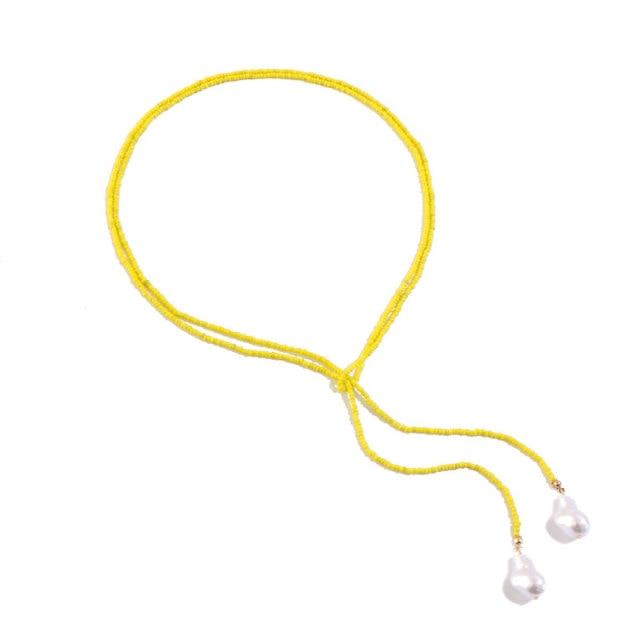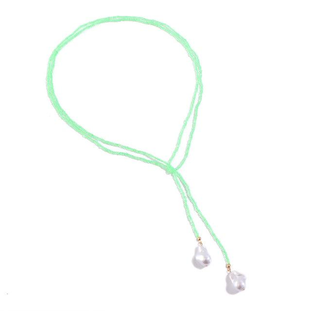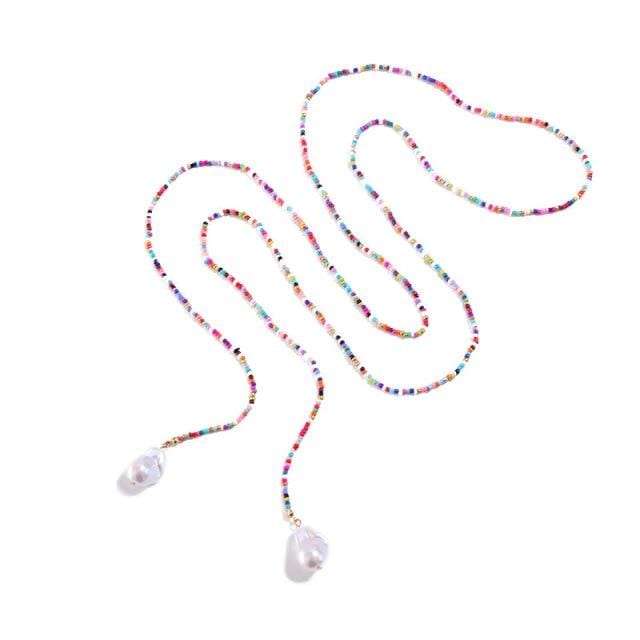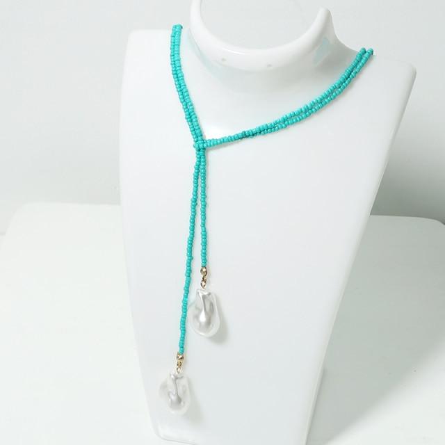 KOMi Boho Imitation Irregular Pearl Beaded Long Double Chains Necklaces for Women Personality Necklaces Jewelry Bijoux K3432