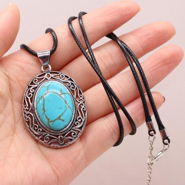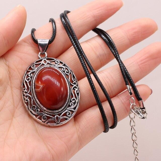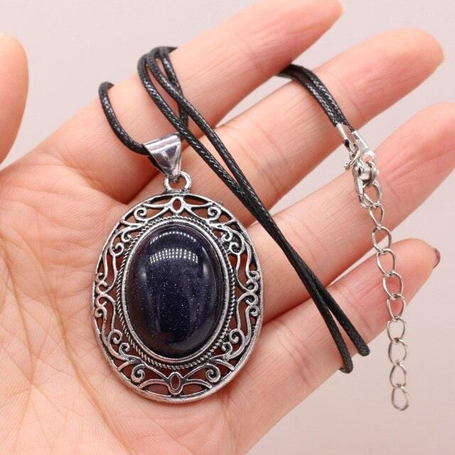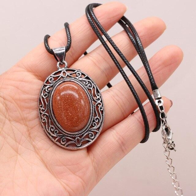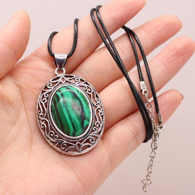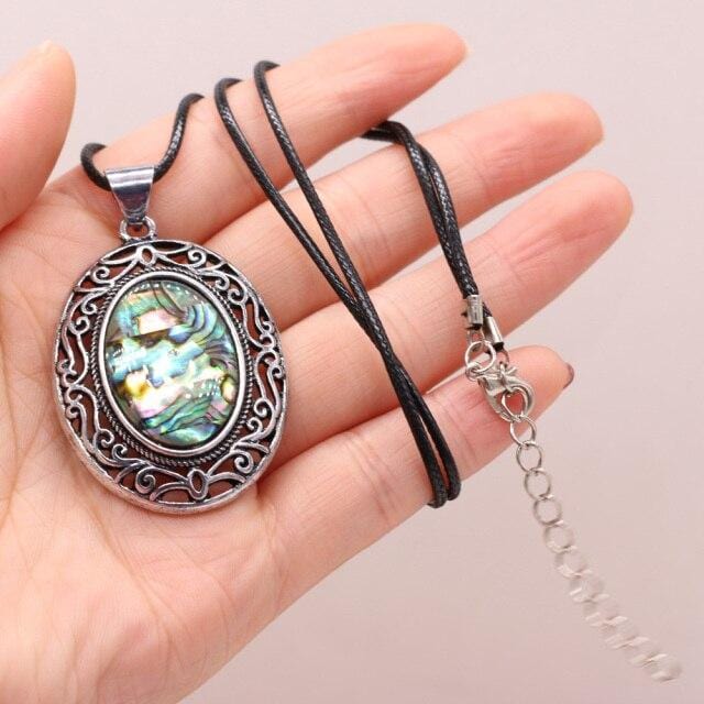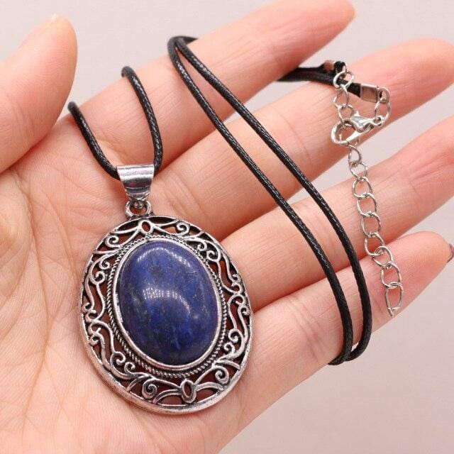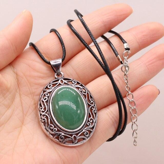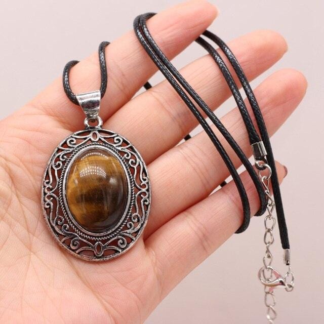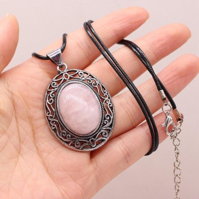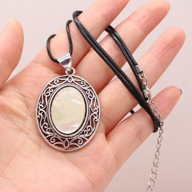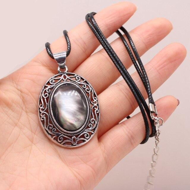 Natural Gem Stone Shell Pendant Egg-shaped Retro Alloy Necklace Amethysts Quartz Charms for Women Necklaces Boho Jewelry Gift