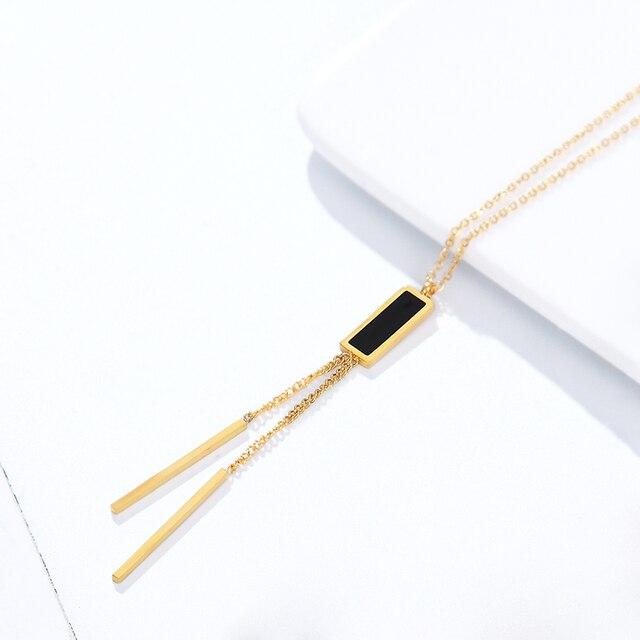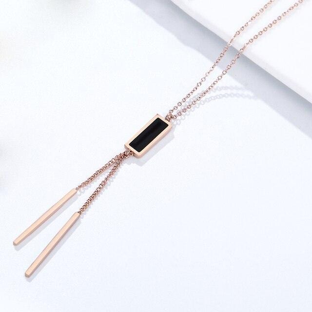 New Arrival Elegant Black Square Hanging Double Chain Pendant Necklace for Women Jewelry Stainless Steel Gold plating Necklace
