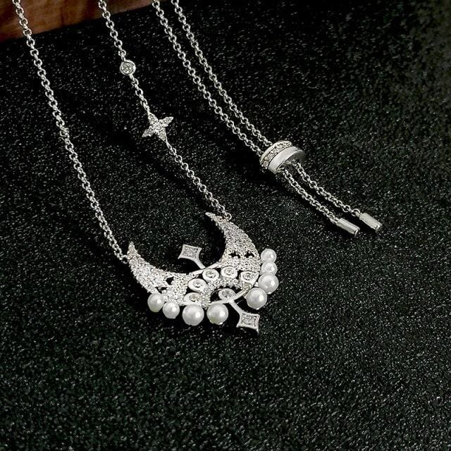 s925 sterling silver women silver moon pendant necklace adjustable with natural pearl luxury fashion cute monaco jewelry gift