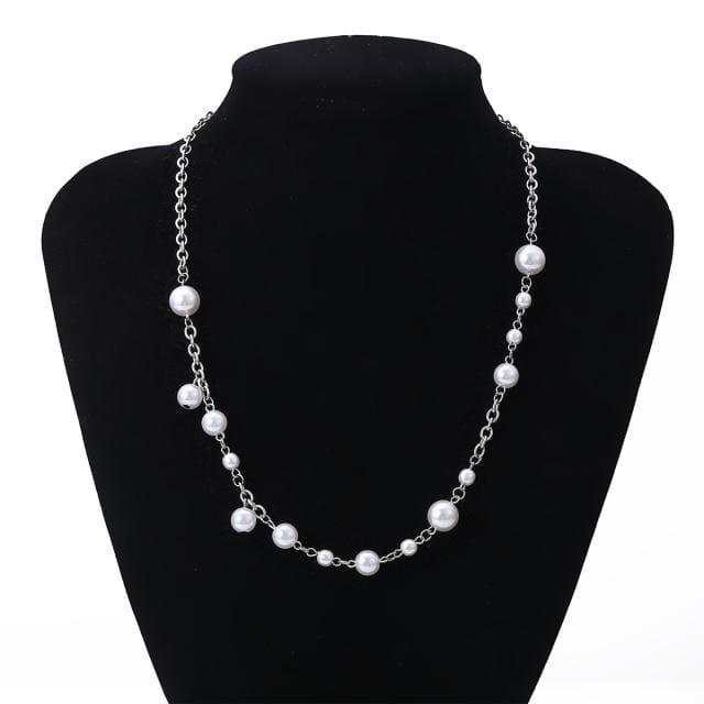 Color: White Pearl Silver Color Chain Necklace Women