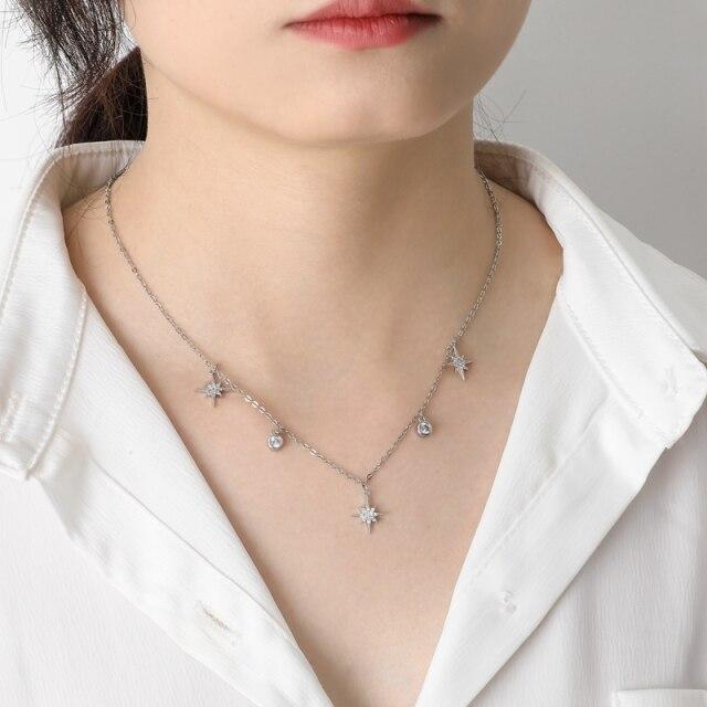 SIPENGJEL Fashion White Crystal Star Pendant Necklace Hip Hop Punk Choker Necklace For Women accessories Jewelry 2021