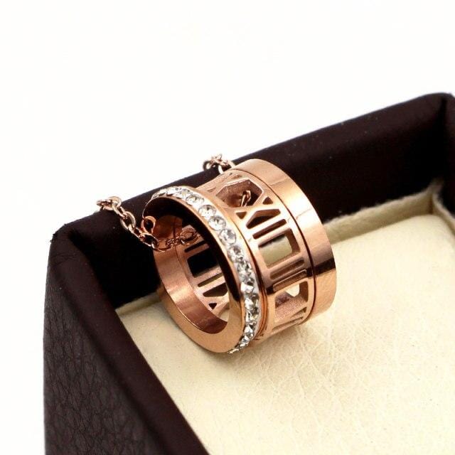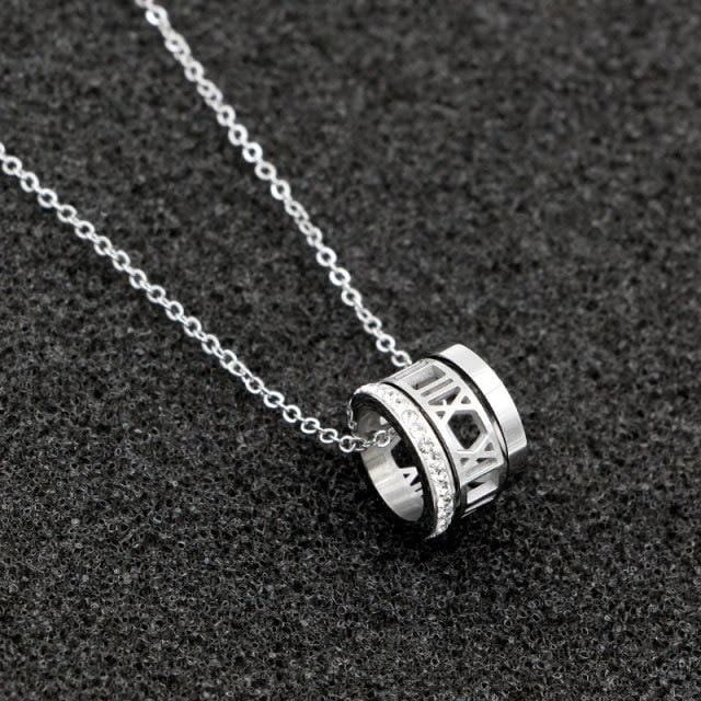 Three Circles Glossy and Roman Numerals and Zircon Pendant Necklace Titanium Steel Gold Color Women Love Gift Jewels