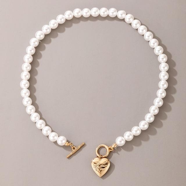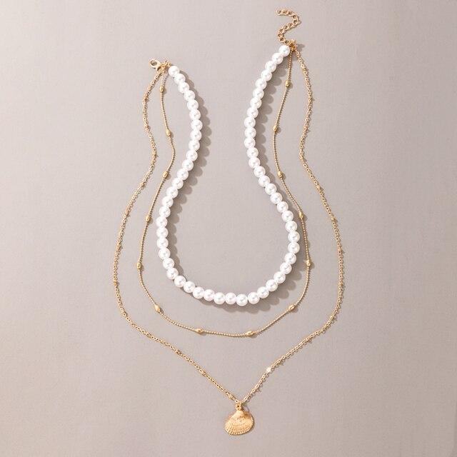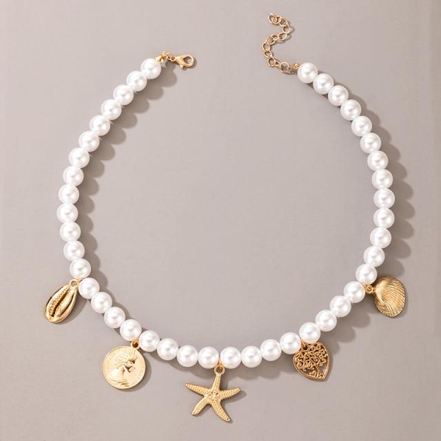 Tocona Luxury Pearl Stone Necklace for Women Charming Summer Shell Starfish Hollow Heart Geometric Pendant Necklace Boho Jewelry