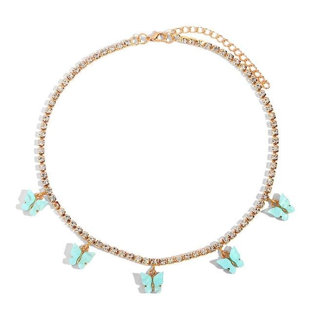 Trendy cute Iced Out Butterfly Choker Necklaces For Women Men Gold Silver Color Tennis Chain Animals Pendant Rhinestone Jewelry