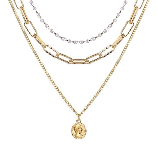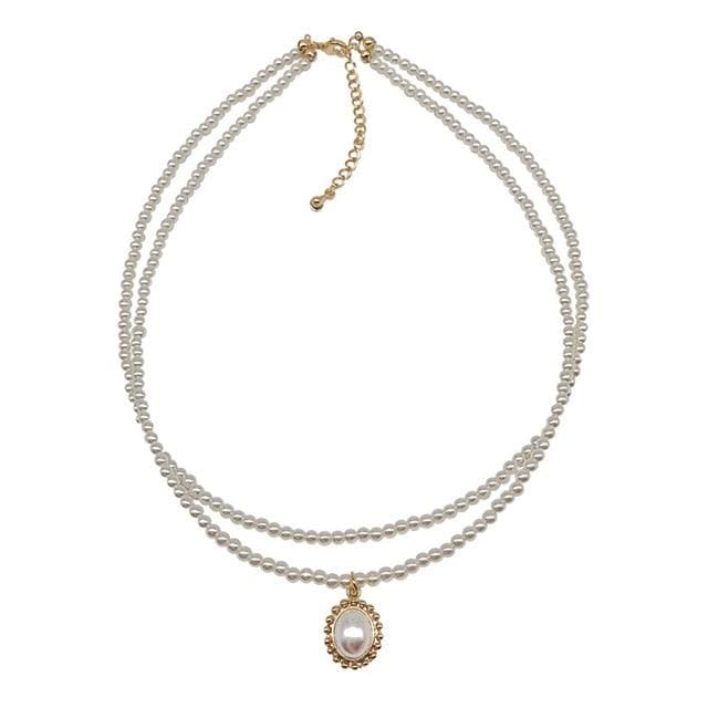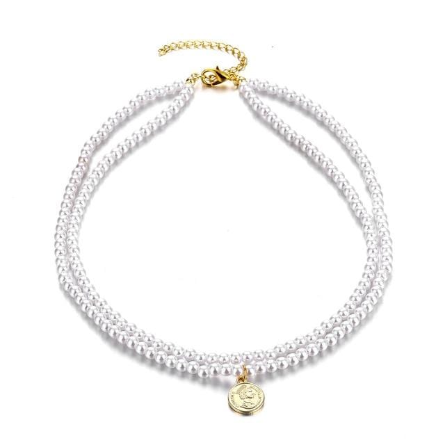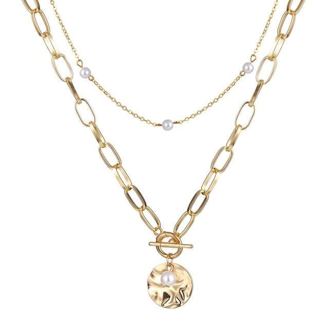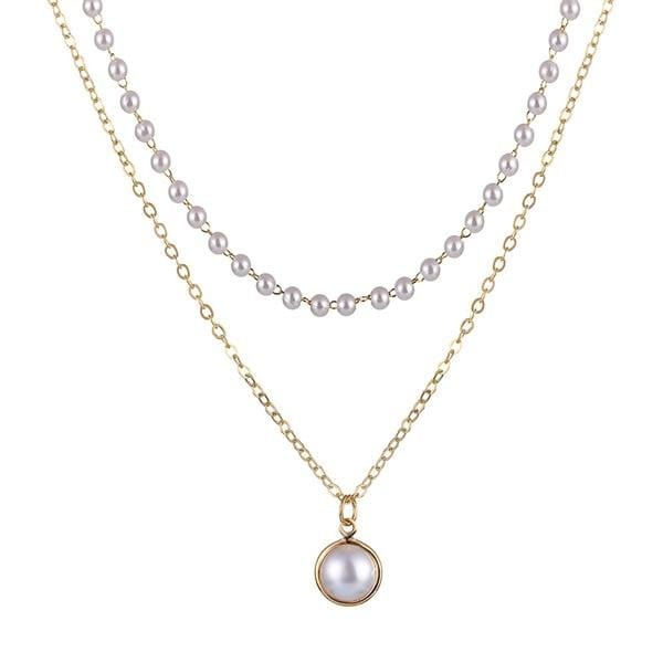 Vienkim 2020 New Double Layer Chain Gold Color Choker Necklace Women Korean Style Pearl Pendant Necklace Fashion Jewelry Collar