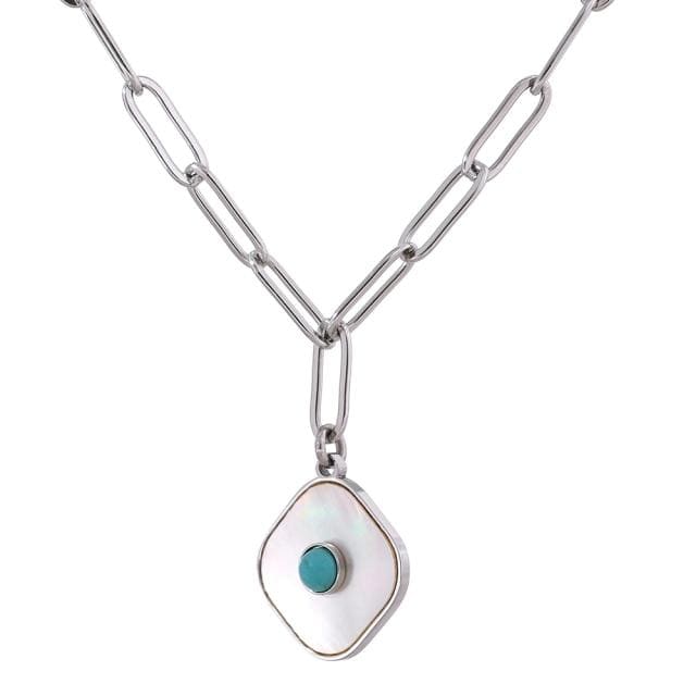 Yhpup Exquisite Natural Shell Square Pendant Necklace 316L Stainless Steel Accessories Fashion Collar 18 K Necklace Gift 2021