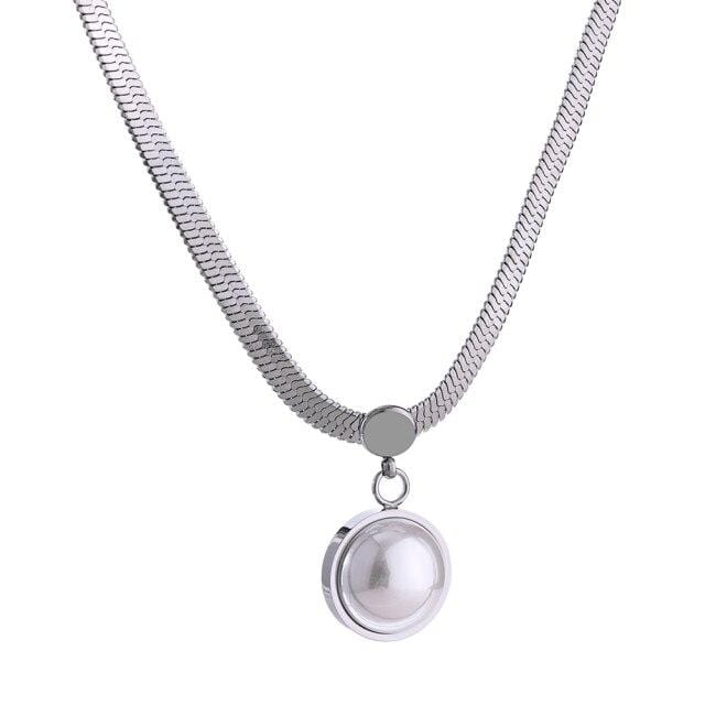 Yhpup Korean Imitation Pearls Pendant Necklace Gold Stainless Steel Collar Fashion Necklace 18 K Women Jewelry bijoux ete 2021