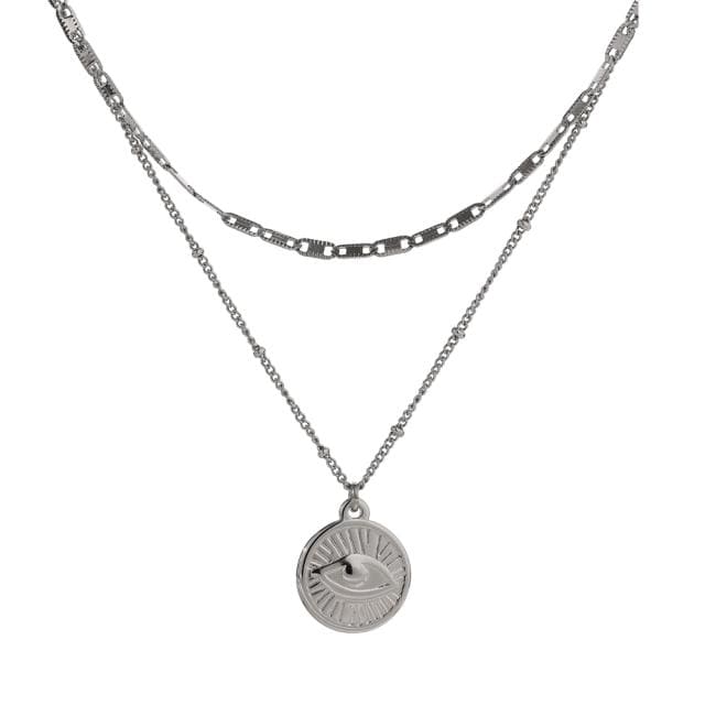 Yhpup Trendy Eye Pendant Layered Chain Necklace Titanium Steel Jewelry 2021 Stainless Steel Charm Collar Necklace for Women