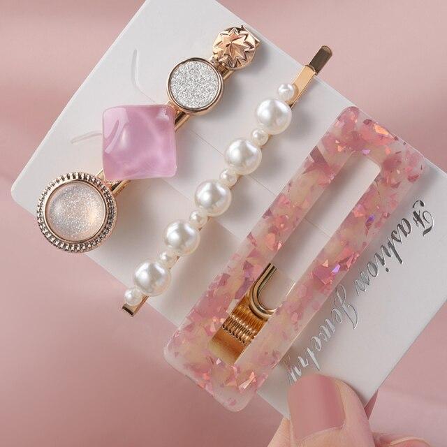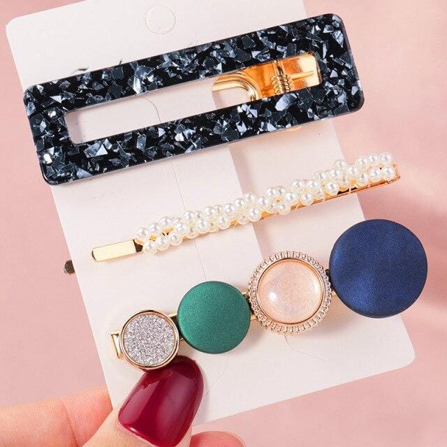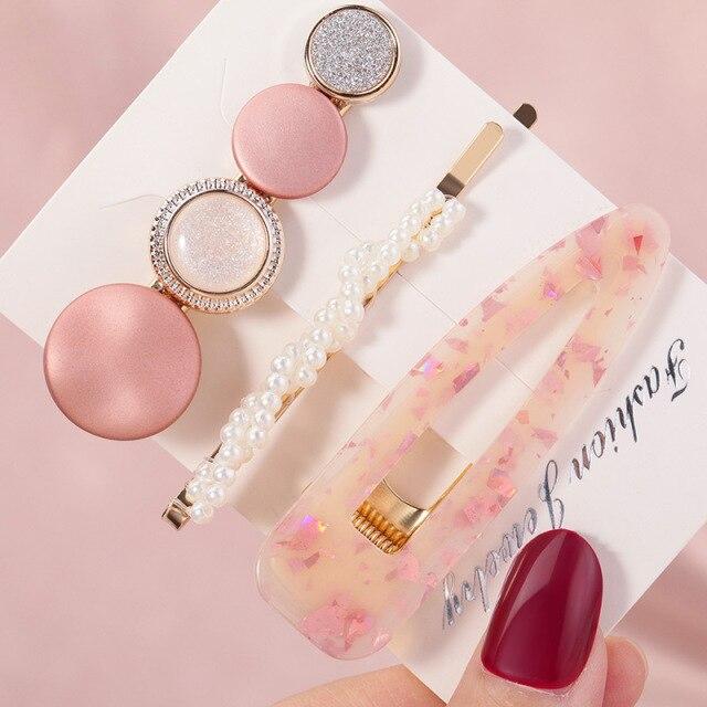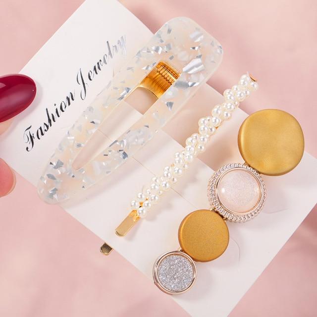 POXAM 1 Set Popular Acrylic Hair Clips For Women Sweet Girl Simple Korean Hairpin Alloy BB Handmade hairwear Hair Accessories