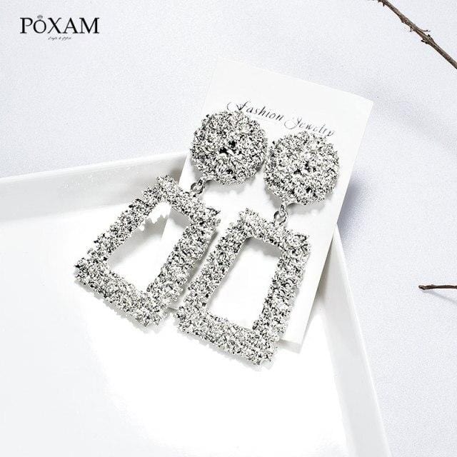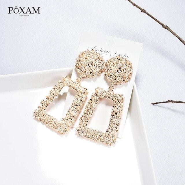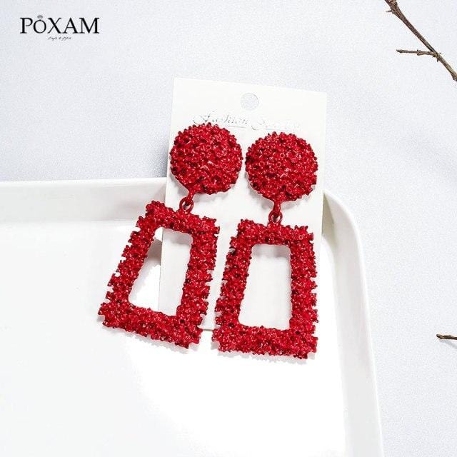 POXAM statement geometric metal drop earrings for women 2019 summer fashion red gold black ear hanging Pendant earring jewelry