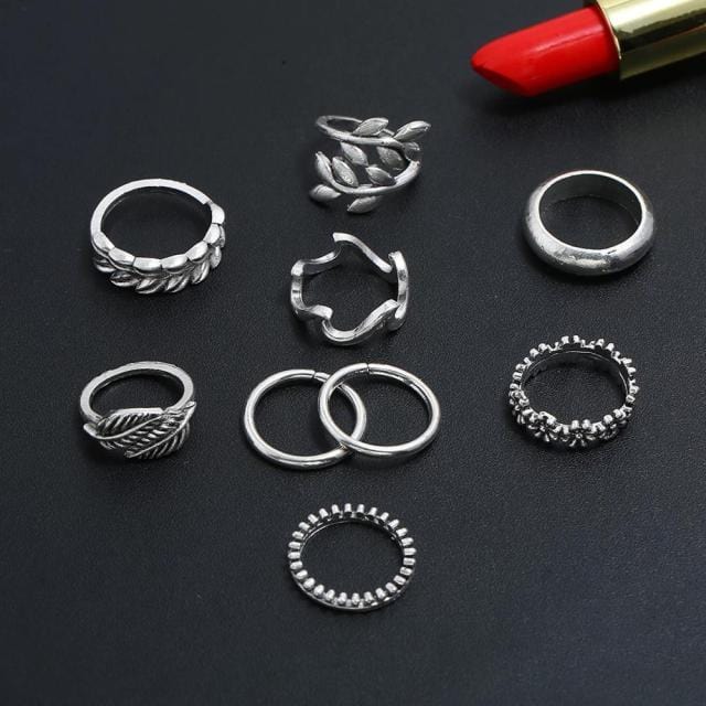 14 Pcs/set Bohemian Retro Crystal Flower Leaves butterfly Hollow Lotus Gem Silver Color Ring Set Women Wedding Anniversary Gift