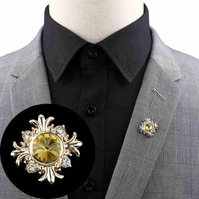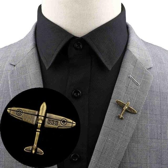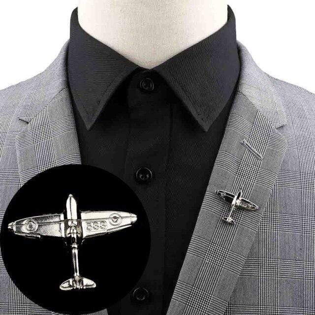 1PC/2PC Trendy Suit Shirt Collar Pin Airplane Crown Tree Leaf Gem Retro Brooches For Men Women Wedding Party Daily Accessory