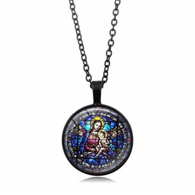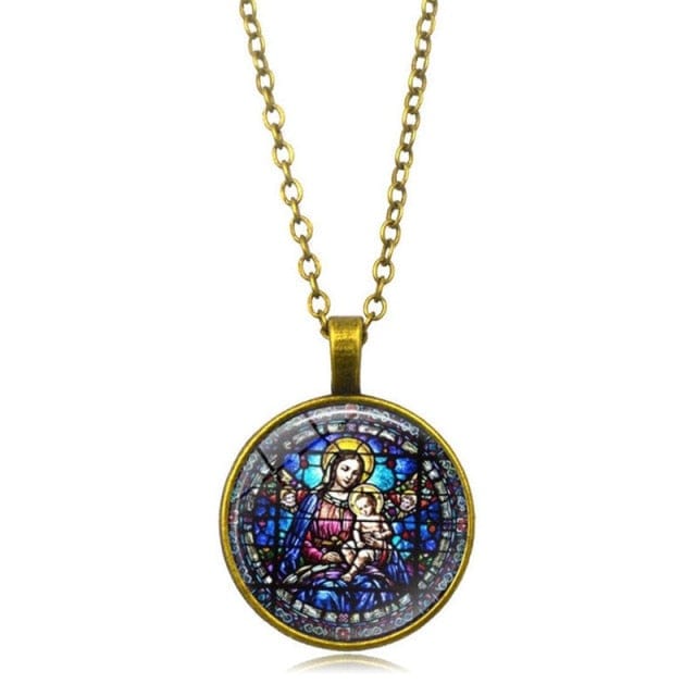 2020 Men and Women Gifts Virgin Mary Time Gem Glass Dome Pendant Necklace Bohemian Jewelry Retro Sweater Chain