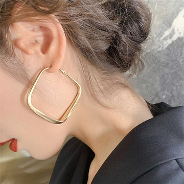 2021 Fashion S925 Silver Needle Square Metal Retro Earrings Temperament Generous Female Matte Gold Color Earrings For Women