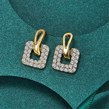 2021 New S925 Silver Needle Retro Micro-inlaid Zircon Hollow Square Earrings Simple Cold Style Female Small Geometry Earrings