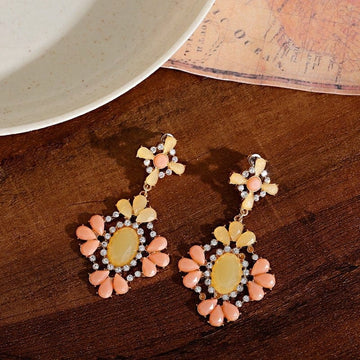 2021 Newest Fresh Personality Temperament Retro Women Orange Flower Zircon Gem Water Drop Earrings Jewelry