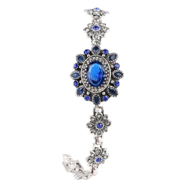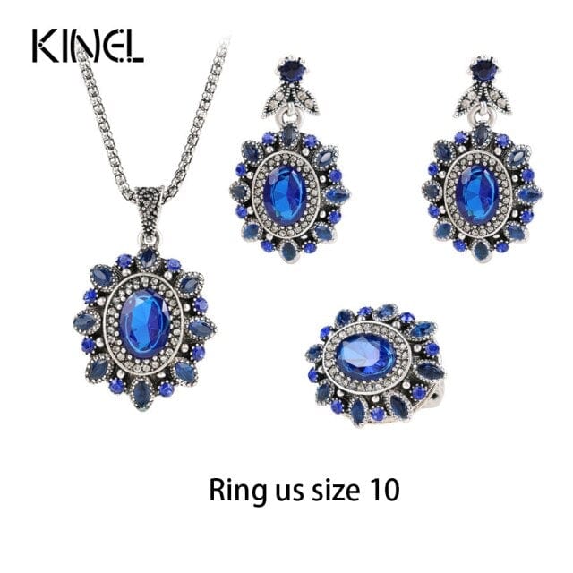 4Pcs Retro Look Blue Crysta Jewelry Sets Silver Color Sunflower Crystal Necklace Ring Bracelet Earring For Bridal Jewelry Sets