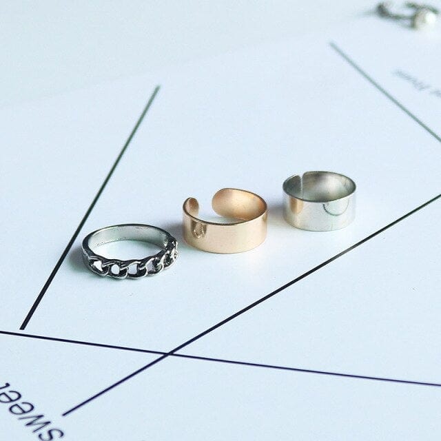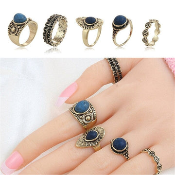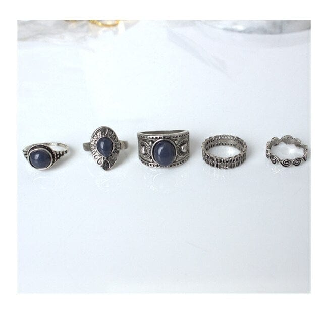 5 Pcs/set Bohemian Retro Crystal Flower Leaves Hollow Lotus Gem Silver Ring Set Women Wedding Anniversary Gift