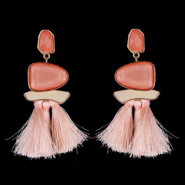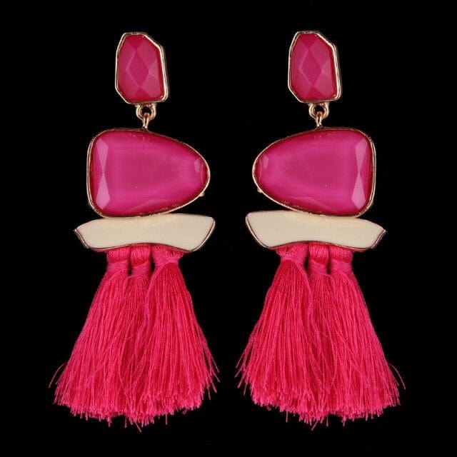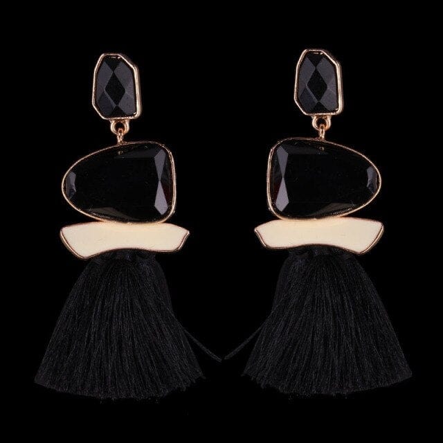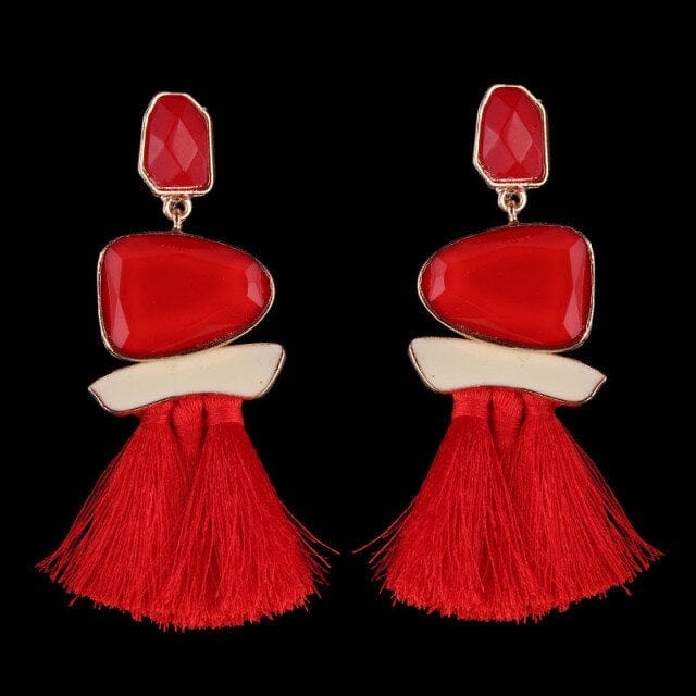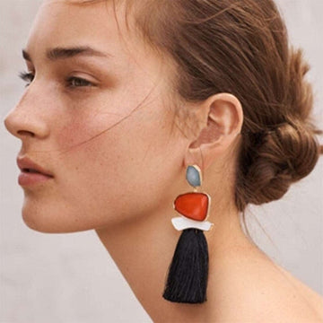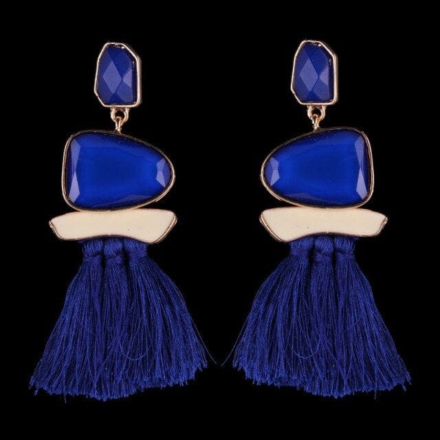 7-color high-quality explosion section Bohemian long section tassel earrings geometric large gem retro art women earrings