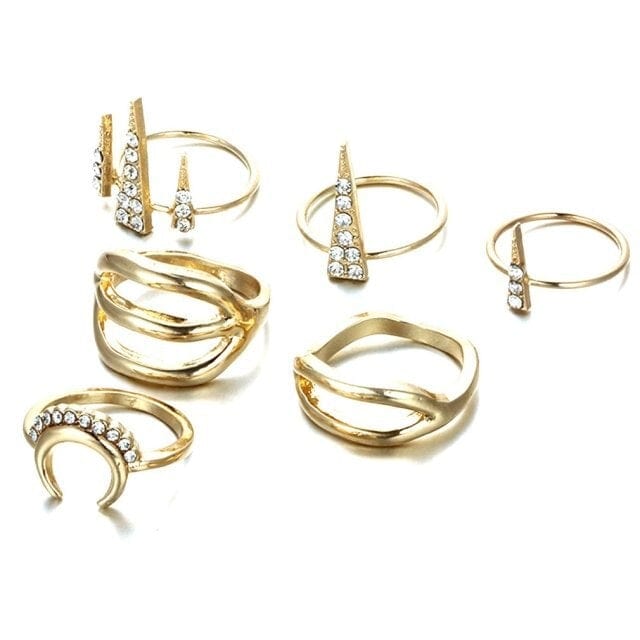 8/6Pcs/set Bohemian Retro Gem Geometry Cross Peach Heart Crown Ring Set Lady Charm Jewelry Dating Valentine's Day Gift 2021 New