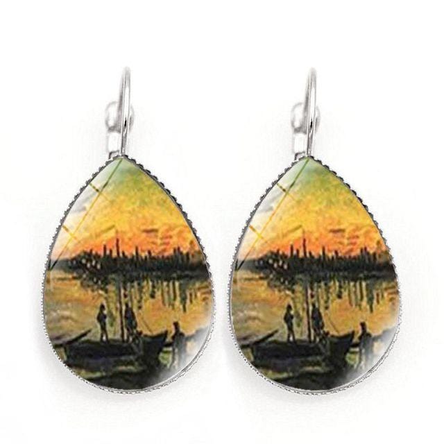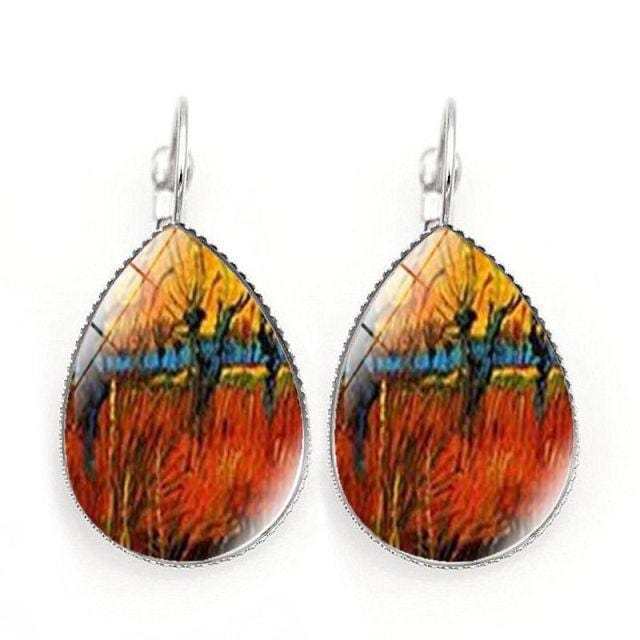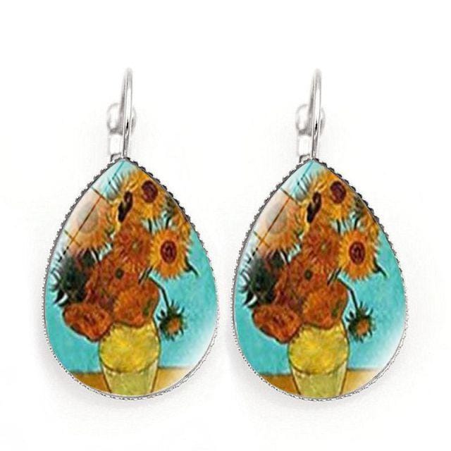 A pair of Earrings New Accessories Van Gogh Starry Time Gem Retro Earrings Metal Glass Earring Jewelry Earrings For Women