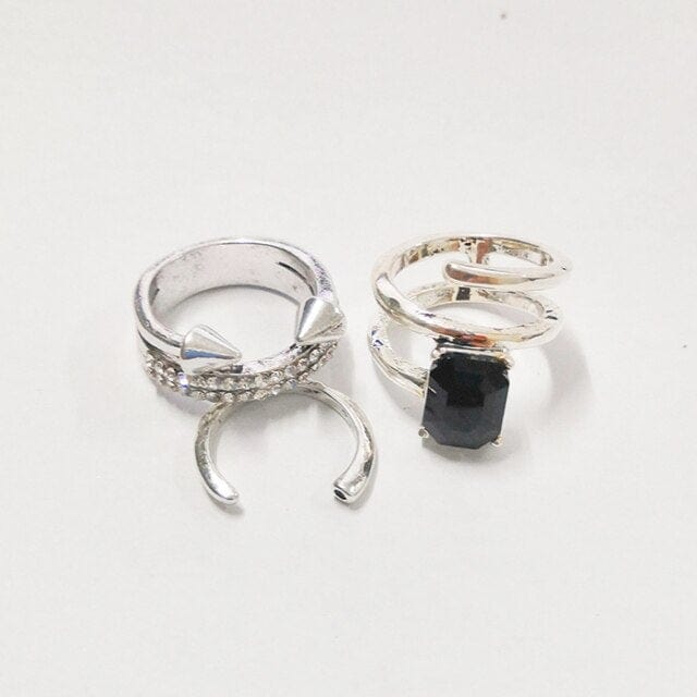 Anise Retro black gem rhinestone rivets knuckle rings fashion wild elegant street beat individuality female rings