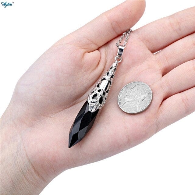 Ayliss New Reiki Healing Crystal Pendants Metal Retro Silvery Narural Gem Stone Waterdrop Yoga Energy Pendant Necklace Jewelry