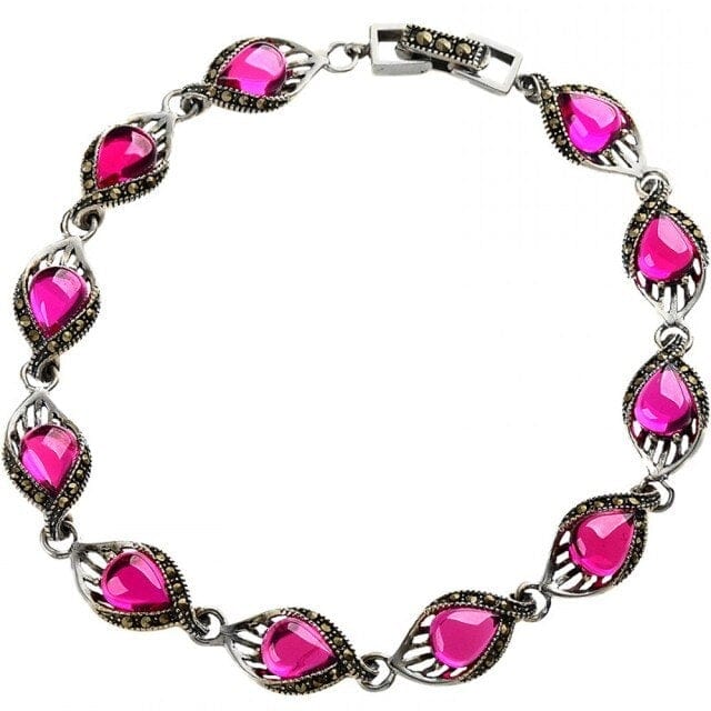 BOCAI 925 Sterling Silver Red Corundum Bracelet Retro 2020 New Fashion Thai Silver Garnet Red Gem Water Drop Bracelet For Women