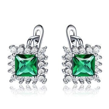 COLORFISH 100% Real 925 Sterling Silver Luxury 6mm Square Shape Gem Earring For Women Retro Green Emerald Crystal Halo Jewelry