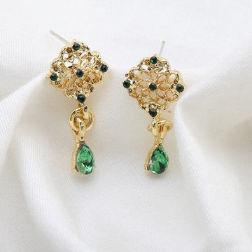 DI-624 S925 Silver Needle Korean Light Luxury High-quality Retro Emerald Water Drop Gem Minor Earrings