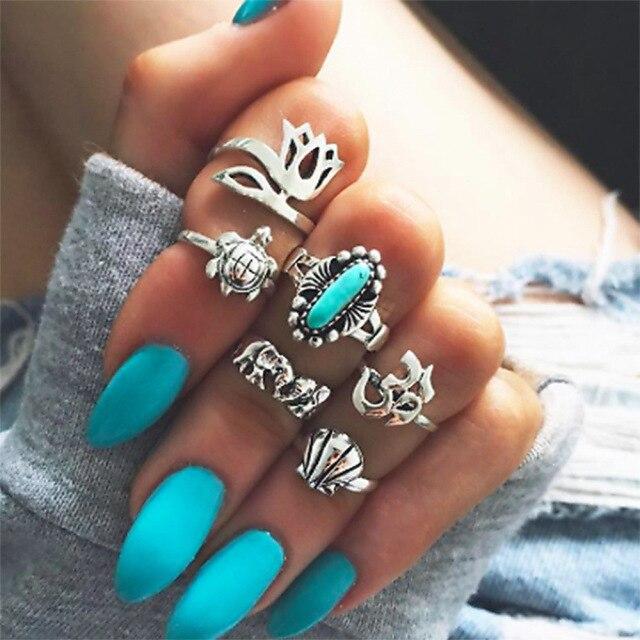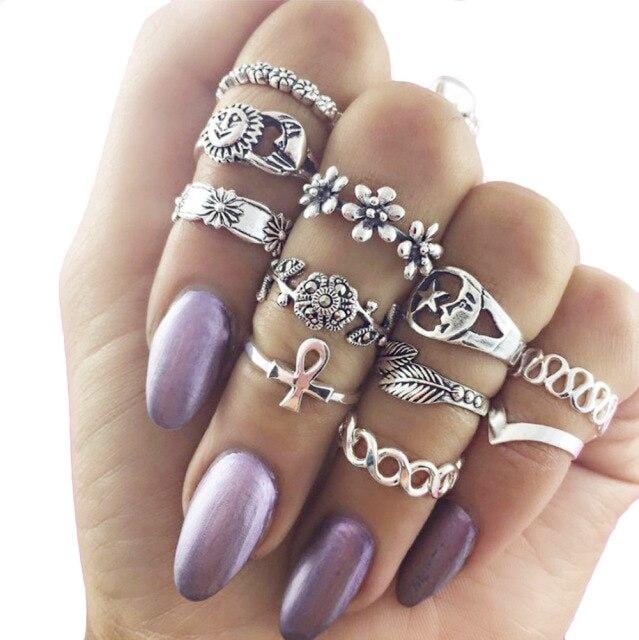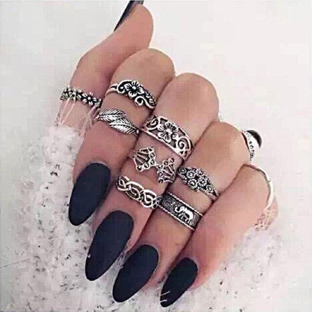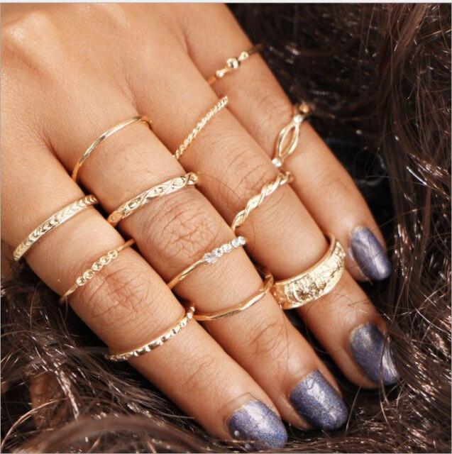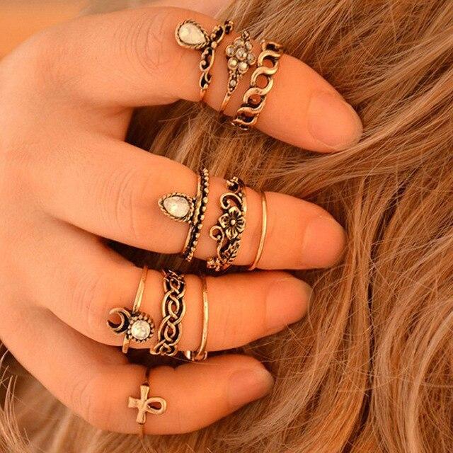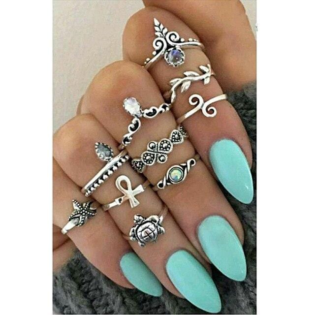 Engagement Ring Multi-piece Ring Set Retro Ethnic Exaggerated Gem Combination 10-piece Set Rings For Women