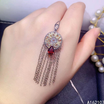 Exquisite Jewelry 925 Sterling Silver Inlay With Natural Gem Women's Luxury Retro Drop Tassel Garnet Pendant Necklace Support De