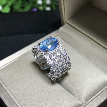 Fashion Retro Open design wide crude Natural blue topaz gem Ring S925 Silver Natural Gemstone Ring men Women party gift Jewelry